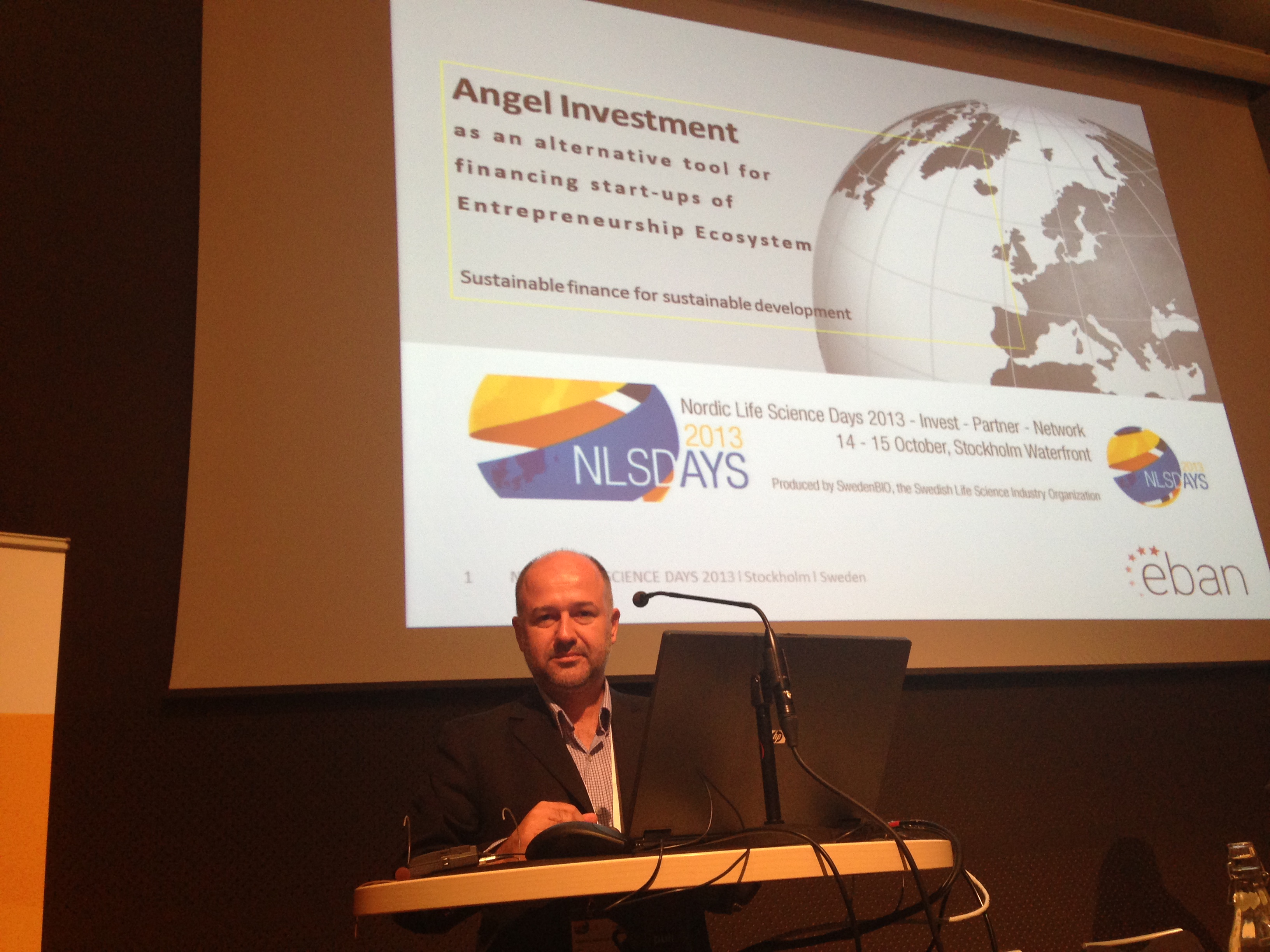 I represented EBAN at the Nordic Life Science Days 2013 in Stockholm. My speech (on the 15th of October 2013) was about early stage finance alternatives for bio-tech start-ups. The moderator of the panel was Dr. Bjorn Kull, Head of the Grants Office of Karolinska University in Sweden.