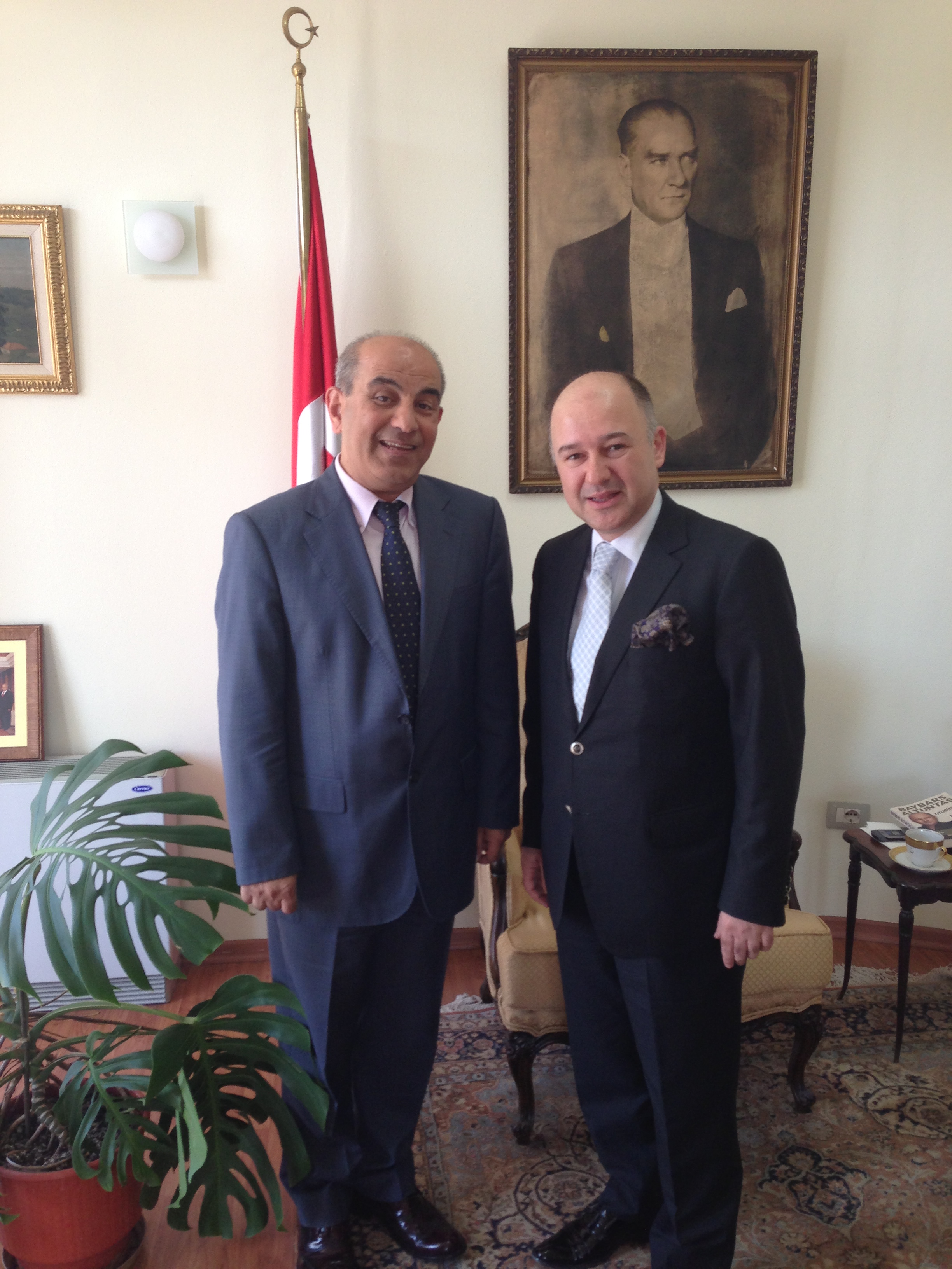 I wanted   to get a coffee and asked him if he would like to join me. He preferred   coffee to tea, like me so l asked Edmond, just behind me, to order 2 coffees   for us. Edmond immediately went out the hall and a few minutes later a waiter   brought our coffees to the front row. Mr Bostjan   Skalarw enjoyed this very much because we were the only ones who were   drinking our coffees and following the speeches. He said: ‘l know this method   from Istanbul . . .’