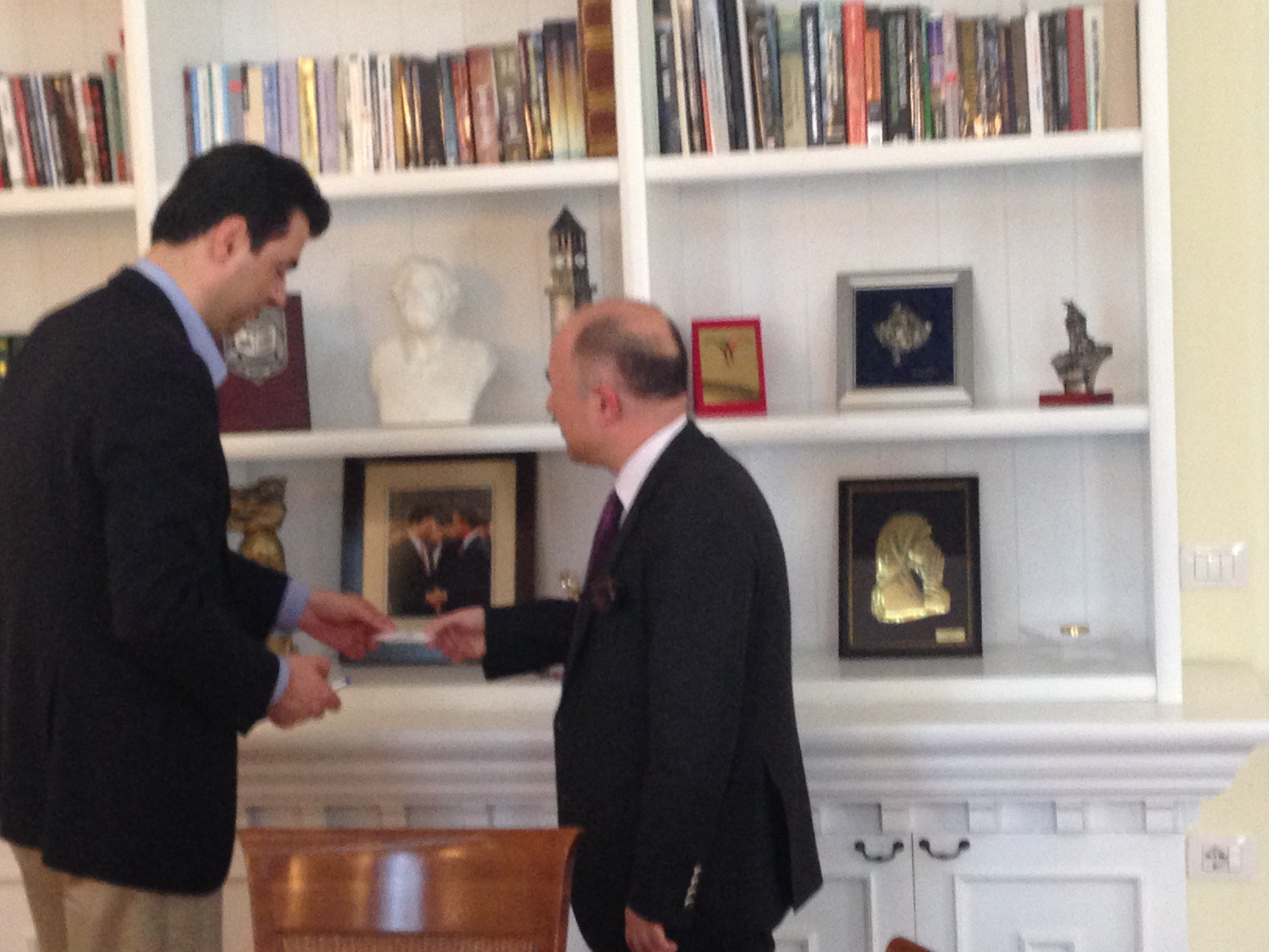 I visited   Mr Nikolin Yaka, the President of   Chamber of Commerce of Tirana, and presented a copy of my book to him. He   invited me to hold a joint press conference on the second evening of the   event about the new innovation fund received from European Union to train the   staff of the SMEs,