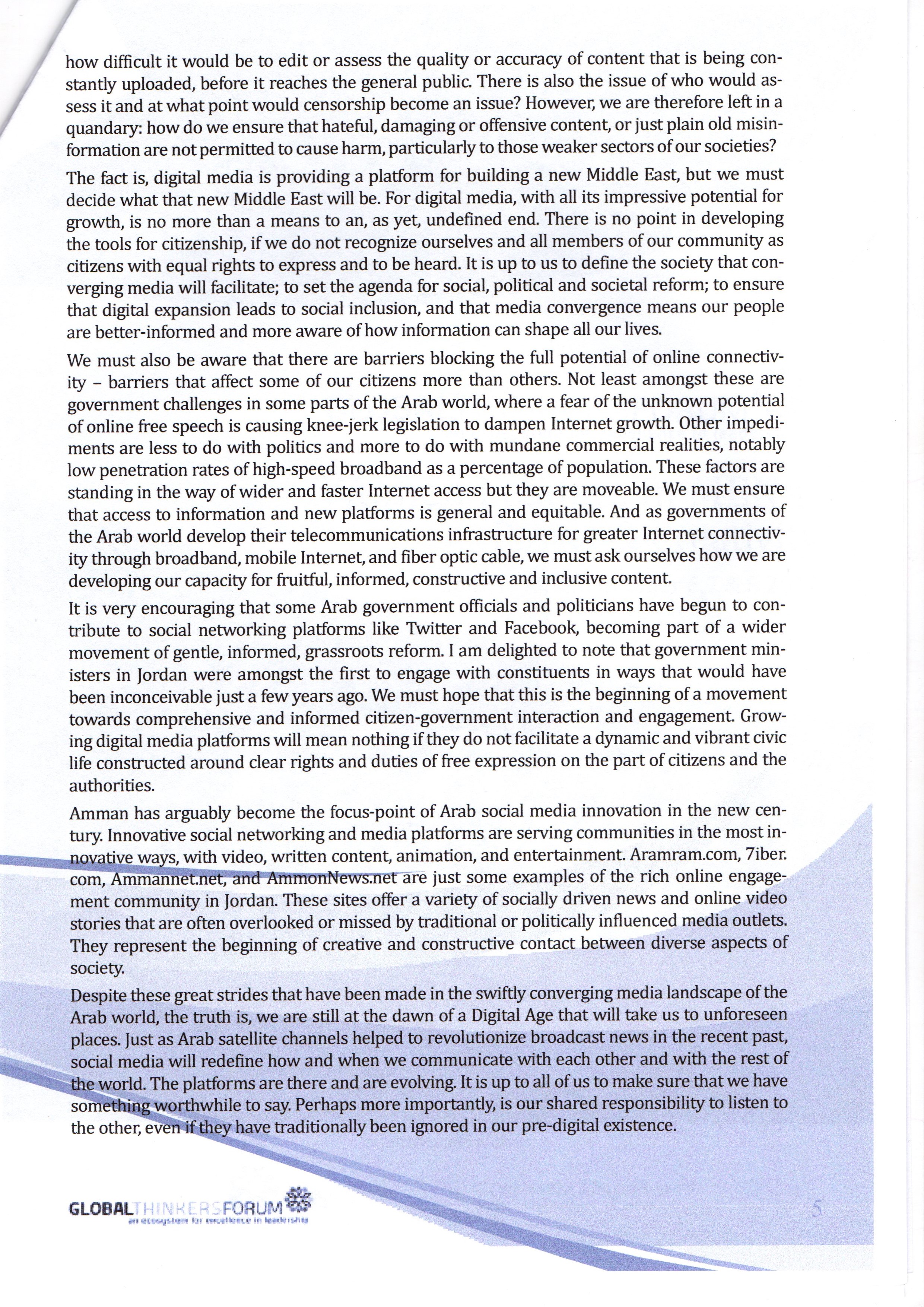 Before coming to Amman, l had sent an e-mail to cover the basics of our panel discussion. Having moderated a lot of panels, I developed a chart before the session and sent it to all the panel speakers so that we could optimize the time we had.