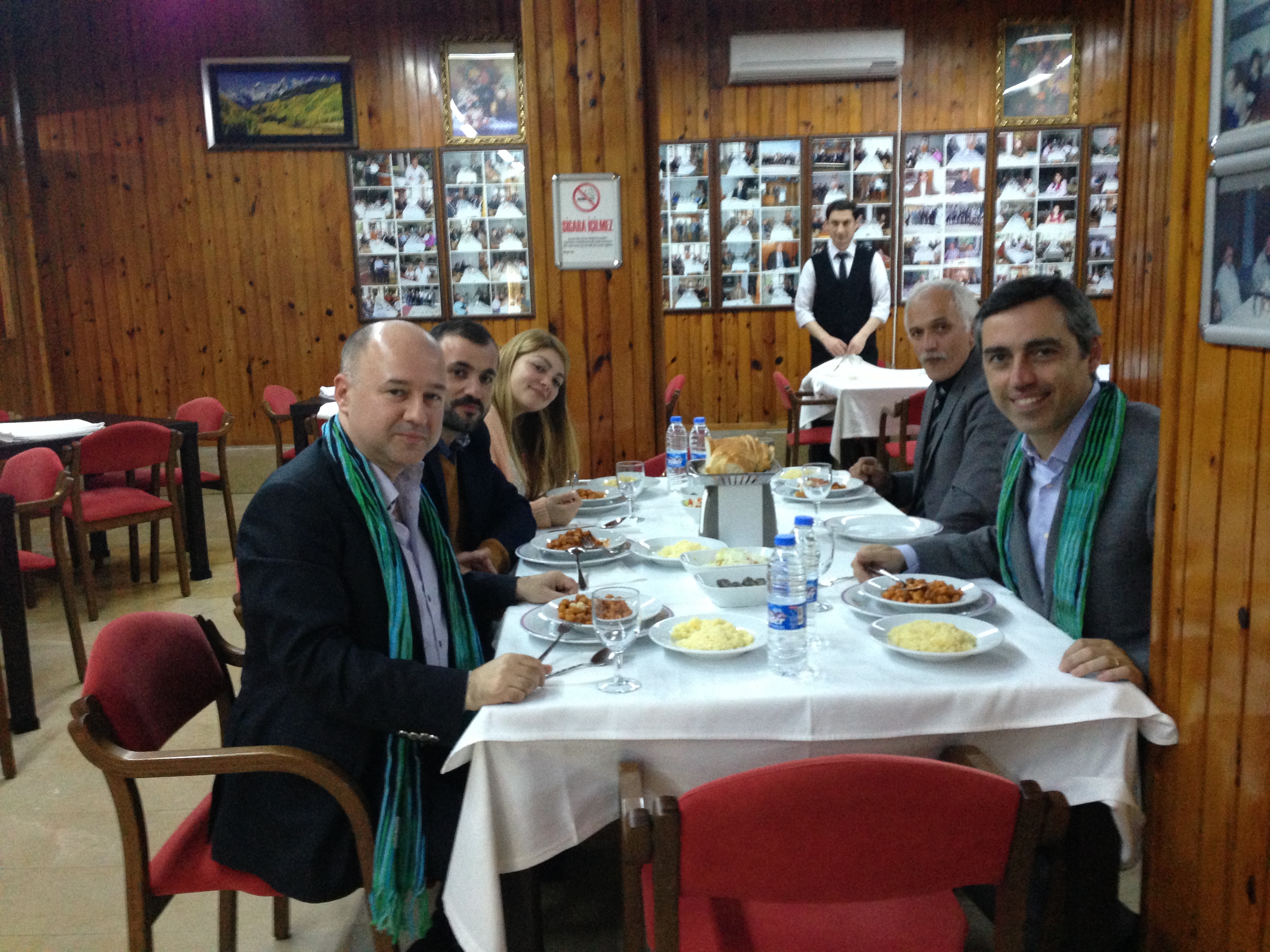 We couldn’t see the streets of Rize in the daylight because it was evening when we arrived in Rize. Following our panel meeting at the MUSIAD Centre, we moved to the nationally-known rice & white bean steam house of Rize, the Husrev. The restaurant normally closes at 19.00, but this time, because Paulo was coming from Lisbon, the owner and staff of the restaurant waited for us.