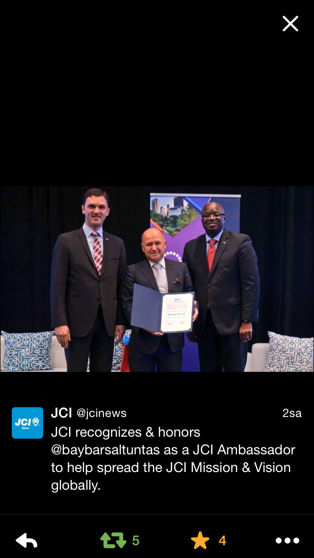 I’d like to thank to Ismail, Arrey, and Carlos for their excellent work in New York and I invite all of you to learn more about the JCI philosophy and to contribute to the vision of young people trying to make a positive change in this world. If you can fit the JCI World Congress into your schedule, please do so!