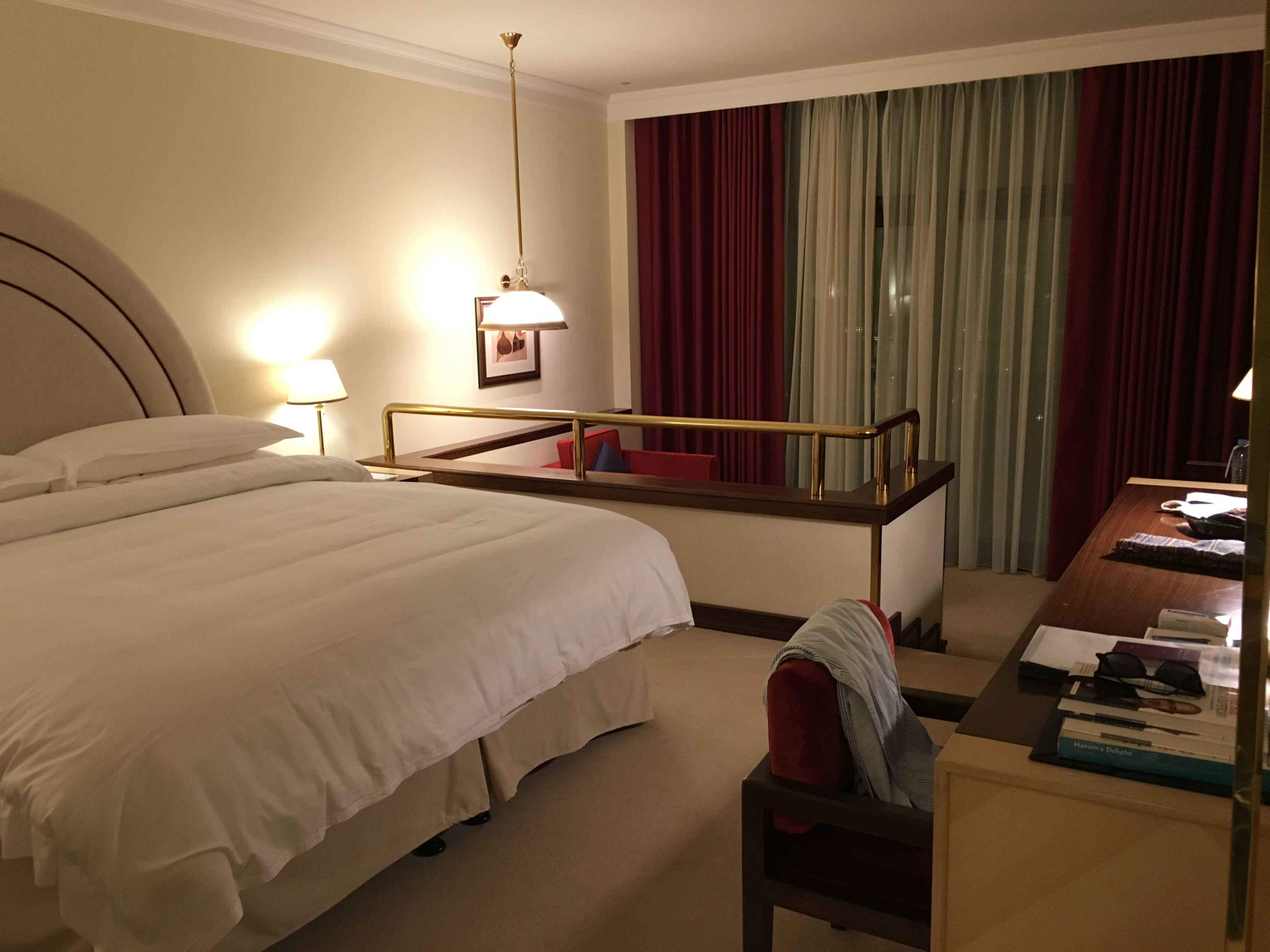 I think it was a good decision to reserve rooms with a city view instead of a sea view in Doha, because the city side of the Sheraton has wonderful buildings which feature different colours of light that change periodically until 4am.