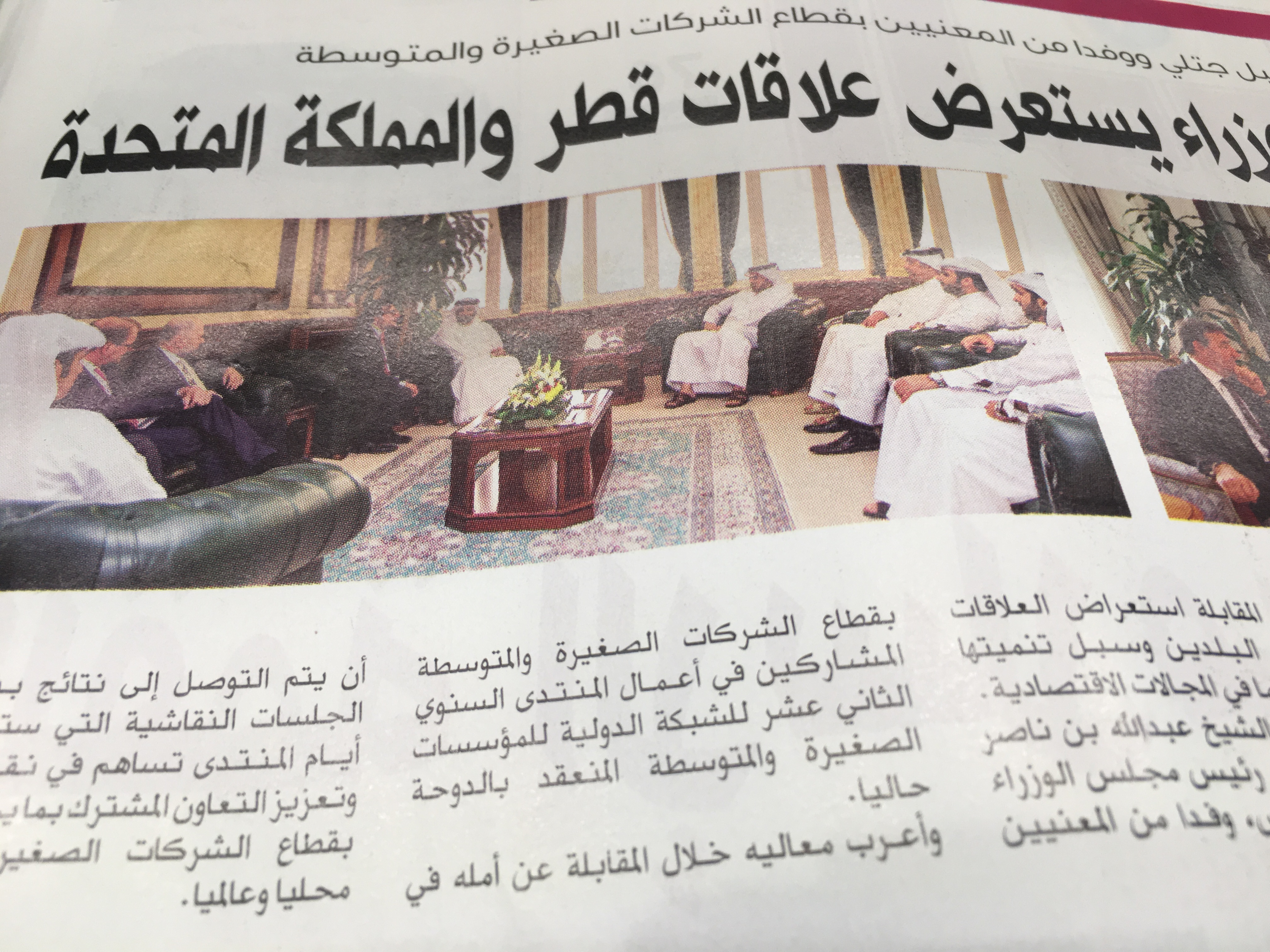 On my third day, it was a nice coincidence that, on the first page of the daily newspapers, President Erdogan of Turkey was pictured shaking hands with the Emir of Qatar Emir in Istanbul, and the last page showed me with the Prime Minister of Qatar on the same day.J
